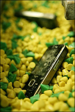 振動耐磨試驗的目的是把產品放在特殊的振動磨損機中,使用特殊的磨損顆粒來模擬樣品在正常使用狀況下的磨損。這種測試只適用于整個工件(比如配有電池的手機)。在產品的研發階段,可以對產品的塑料模型進行磨損測試,來對產品表面的耐磨性進行評估。