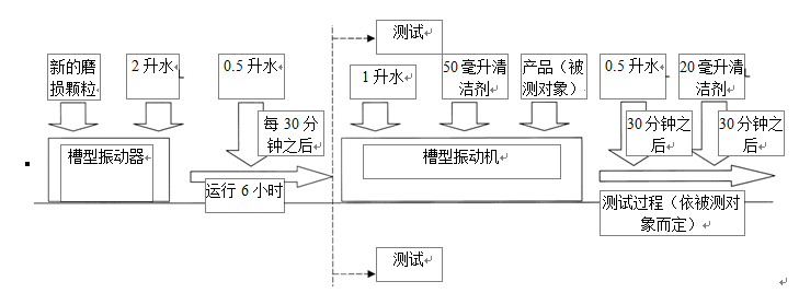 在磨損測試結果的報告中,需要包括磨損介質的使用時間。磨損介質的正確使用時間的計算方法是:預測試時間(6小時)+本次測試之前已被使用過的時間圖3:測試圖